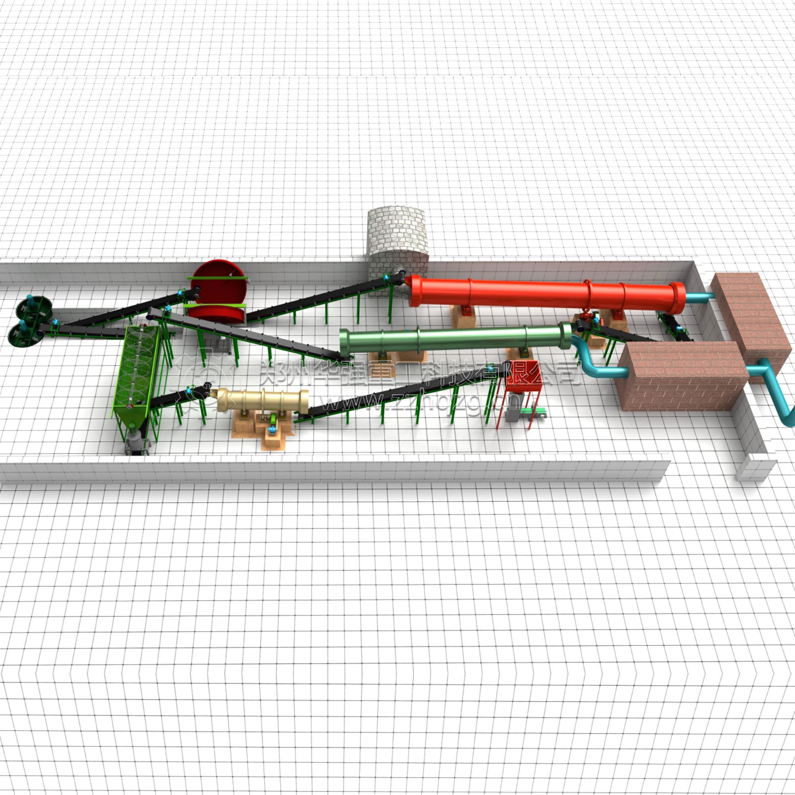 再將配好的混合料加入攪拌機(jī)進(jìn)行攪拌,攪拌-定要?jiǎng)? 要透,不留生塊。攪拌好的配料堆成寬1.5米- 2米,高0.8米- 1米的長(zhǎng)條,每2天用翻拋機(jī)翻拋一次。堆制2天升溫、4天無(wú)臭、7天松散、9天變香、10天成肥。具體講就是堆制第2天溫度可達(dá)60°C -80°C ,殺死大腸桿菌、蟲卵等病蟲害;第4天消除 了雞糞的臭味;第7天堆肥變得松散干爽,長(zhǎng)滿白色菌絲;第9天發(fā)出一種酒曲香味;第1 0天菌肥便發(fā)酵成熟,稍加晾干便可用半濕物料粉碎機(jī)粉碎,經(jīng)有機(jī)肥造粒機(jī)造粒,經(jīng)過烘干機(jī)烘干脫水,然后經(jīng)過篩分機(jī)篩選,成品有機(jī)肥就做好了,就可以裝包儲(chǔ)存了。